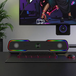 🎮 Perfect for Gaming & Movies – Boosts atmosphere with punchy sound + RGB glow.
